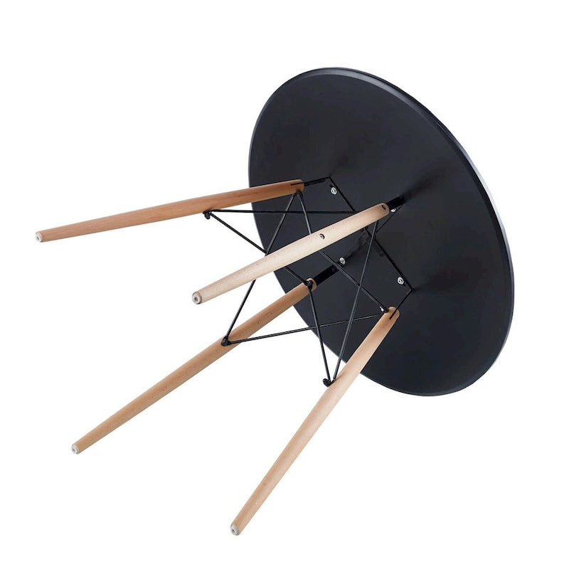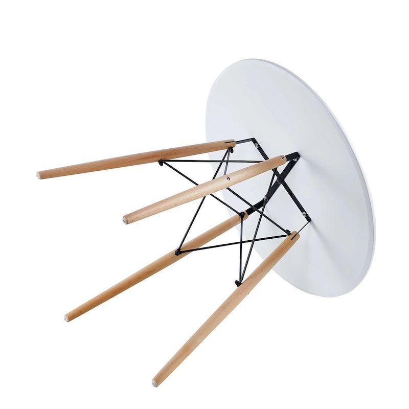 Add a touch of mid-century modern style to your dining room with this elegant and sturdy dining table. With a round MDF table top, metal frame, and wooden legs, this table is not only stylish but also durable. It is easy to assemble and clean, making it perfect for everyday use. The table has a weight capacity of 220Ibs and comes in a beautiful white color.