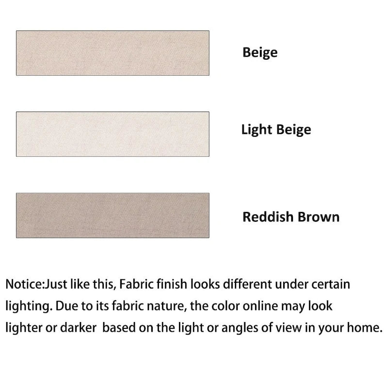 Dimensions and Warranty: Dining Table: 47.5x15.7x42.3inch; Dining Chair: 16x18.1x40inch, Seat to Ground: 29.1inch, Cushion Thickness: 2.1inch. Fabric finish looks different under certain lighting. Due to its fabric nature, the color online may look lighter or darker based on the light or angles of view in your home.