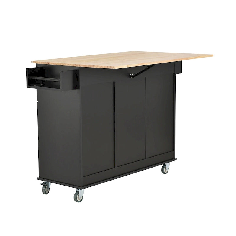 52.7 W Rolling Mobile Kitchen Island with Solid Wood Top and Locking Wheels,Storage Cabinet and Drop Leaf Breakfast Bar
