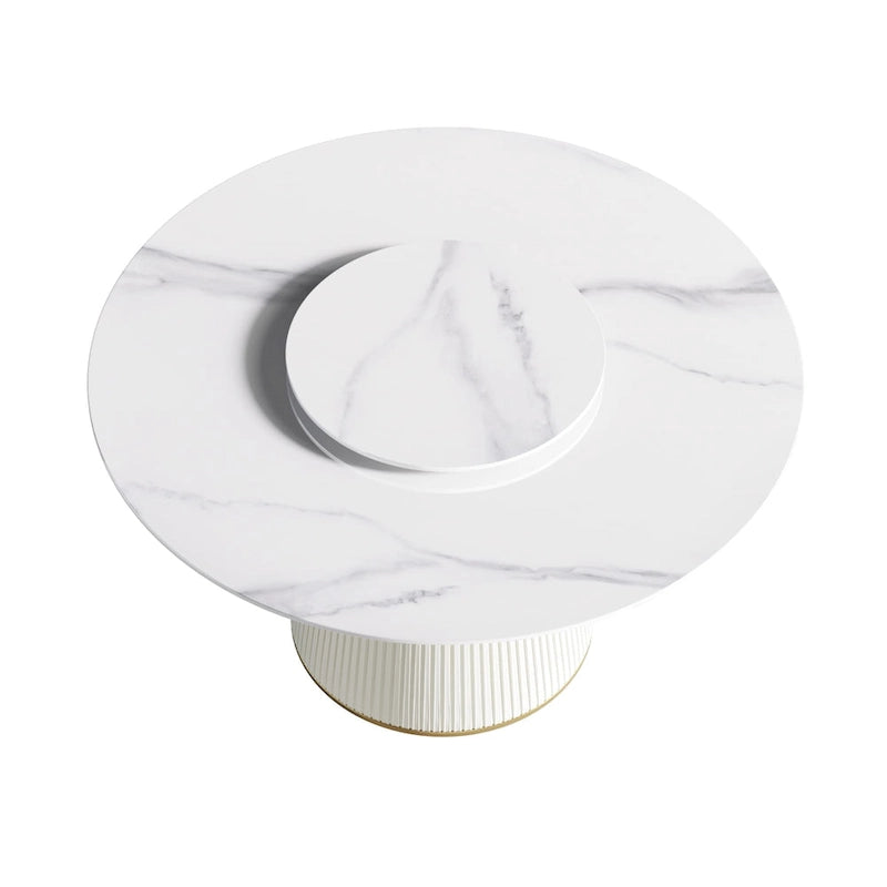 53 Round Dining Table for 6, Modern White Sintered Stone Tabletop with Lazy Susan - N/A