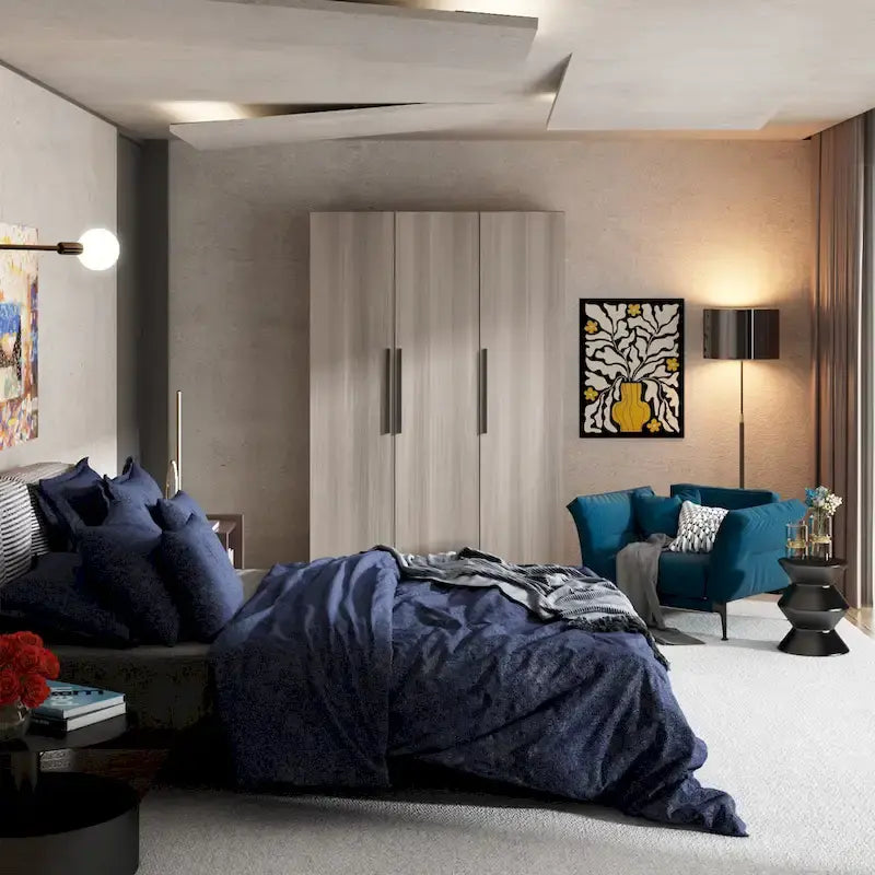 Door off armoire with exquisite handles,this wardrobe will be perfect to complement your bedroom decor.