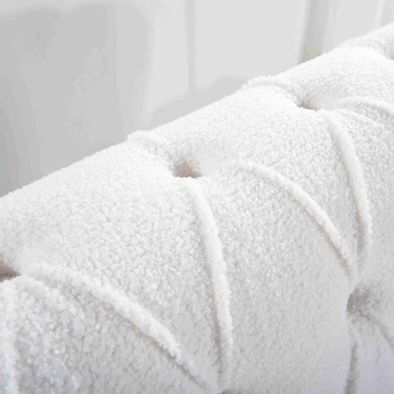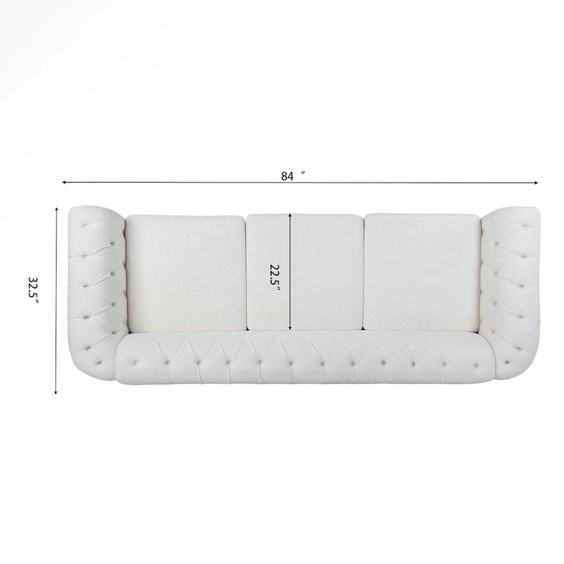 Experience ultimate comfort and elegant style with our 84 White Rolled Arm Chesterfield 3 Seater Sofa Couch. The clean-lined silhouette boasts pleated rolled arms and silver studs trim, adding a touch of glamour to the classic design. Made with top-quality fabric and superior construction, this sofa guarantees both durability and sophistication. Perfect for any traditional, eclectic, or modern aesthetic, this piece is a timeless addition to your home.