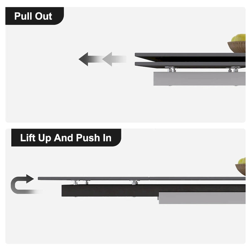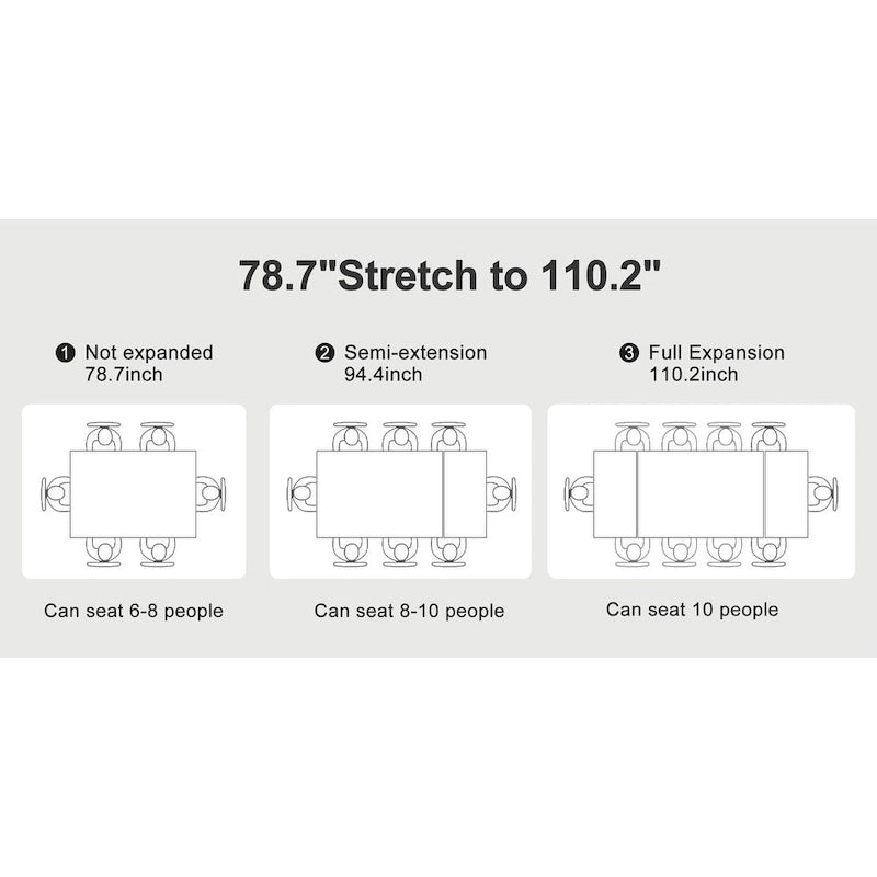 Extendable table The sintered stone table top has a hidden extended tabletop section at the bottom, and the overall length of the dining table ranges from 78 to 110. It can hold up to 8-10 people,which is perfect for accommodating larger gatherings.