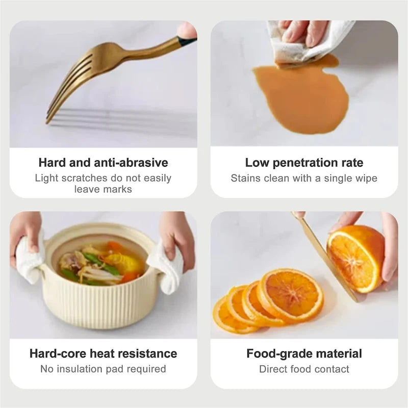 Easy to clean: Our Sintered stone dining table just requires minimal care. With this easy-to-clean surface, you can spend more time enjoying meals and less time on upkeep.