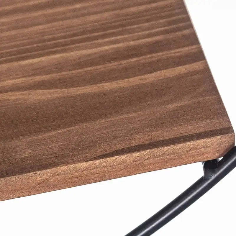 - Modern design with black metal frame and three staggered solid wood shelves