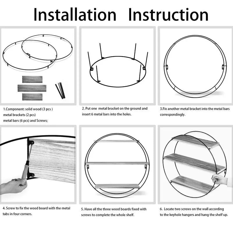 Add a touch of artistry and functionality to your home with the ADECO Wall Shelf Round Floating Shelves. This classic floating shelf features a modern design with a black metal frame and three staggered solid wood shelves. With its versatile and functional design, it can be used to display your books, photo frames, or decorations in your living room or home office. The durable finish of the shelves makes them easy to clean, ensuring they look beautiful for years to come. Easy to install, all parts are included.