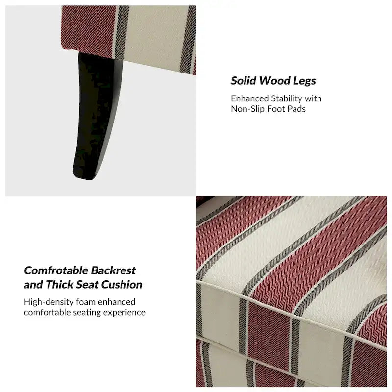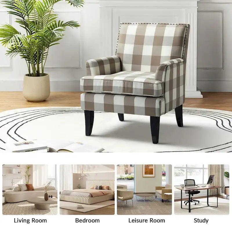 Add a touch of French country charm to your living room with the HULALA HOME French Country Arm Chair. Built with solid birch wood, this chair provides sturdy support and comfort with its high-density foam and soft polyester fabric cushion. The individually wrapped pocket coil spring system offers extra lumbar support, making it a great addition to your bedroom, office, or vacation spot. The chair boasts a classic design with a slightly slanted backrest, recessed arms, and tapered block feet, accentuated by gleaming nailhead trim. Assembly is quick and easy, and the chair's compact size of 27.5Wx28Dx33.5H makes it perfect for urban dwellers with limited space.