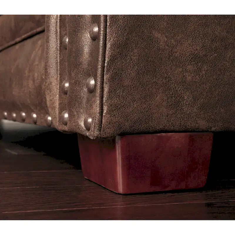 Bring the beauty of nature indoors with our Alpine Cabin Lodge 4 piece Living Room Sleeper Set. The leather-look microfiber fabric and cotton tapestry add rustic charm to this sturdy furniture set. The solid wood frames and legs ensure durability, while the high-density foam cushions provide the perfect balance of support and comfort. The sleeper sofa features a quilted top queen mattress that offers a restful night's sleep for your guests. Perfect for your den or living room, this set exudes a cabin, country, and rustic style that will last for years.