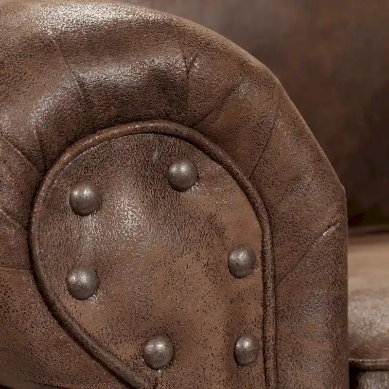 - Leather-look microfiber fabric and cotton tapestry for rustic style