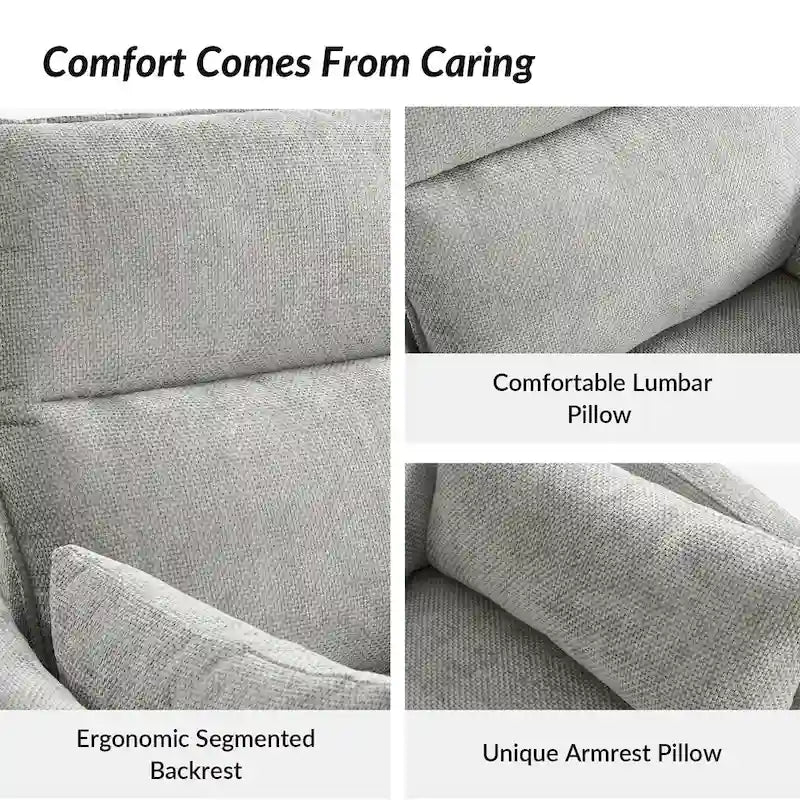 - Rocking and Swiveling: The recliner is designed to rock back and forth gently, providing a soothing motion for relaxation. Additionally, it can swivel, allowing you to easily turn and adjust your position without getting up.