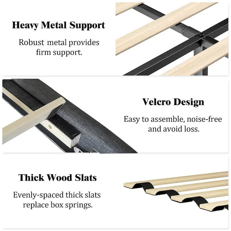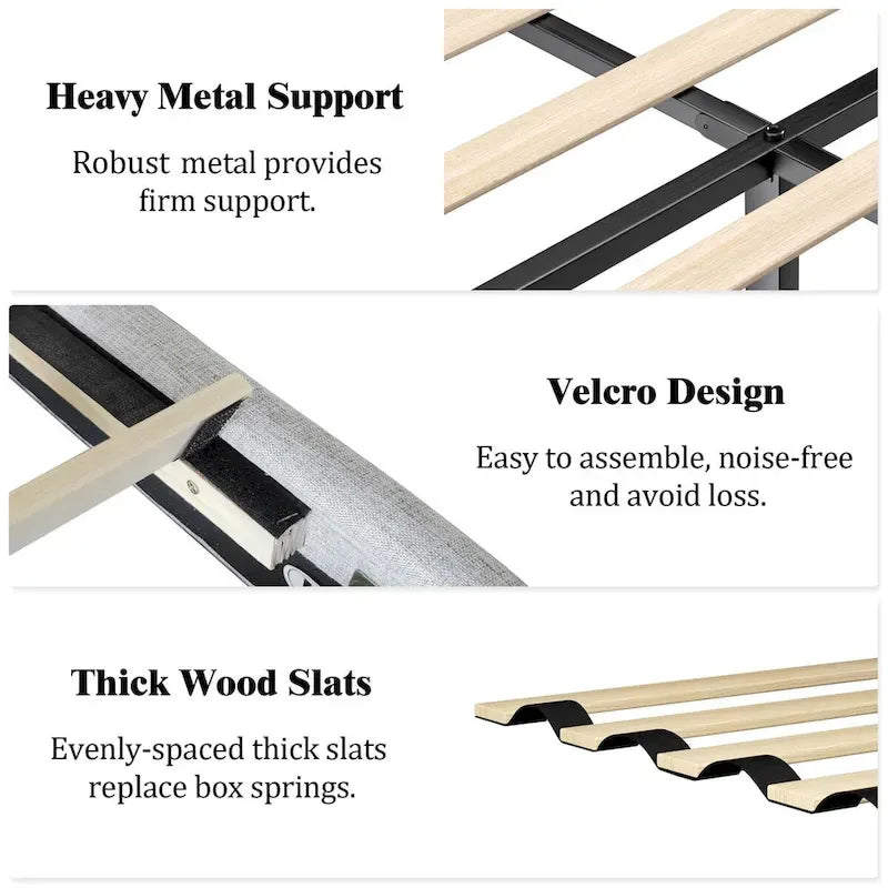 - Enjoy hassle-free assembly and peaceful sleep. Velcro Fastening Slats securely fixed in place, ensuring quick setup and noise-free nights, providing you with uninterrupted rest.