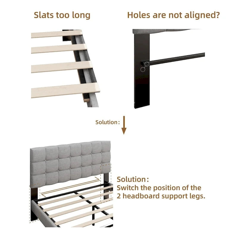 - Modern Headboard: Features breathable fabric and box button stitching.