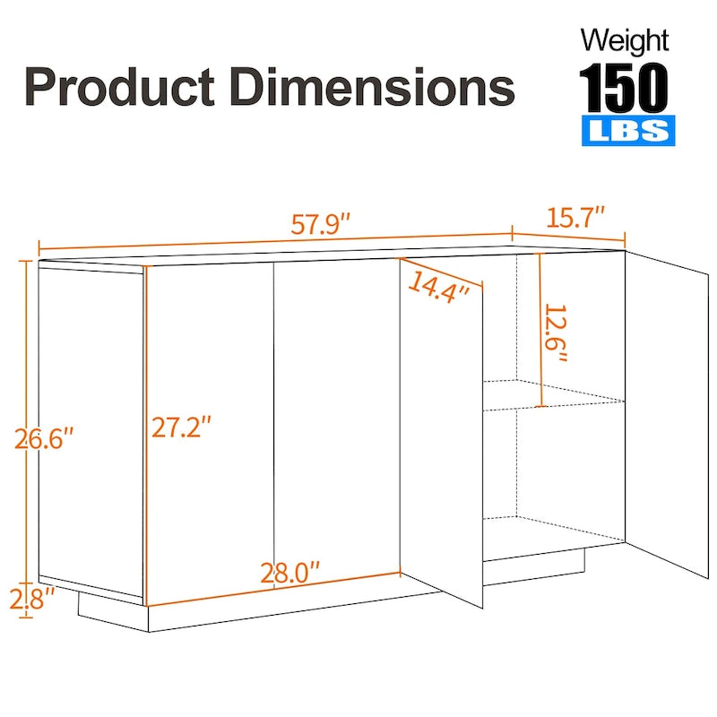 This buffet is a great choice for your home. The buffet is designed by MDF materials and wooden legs, which is durable and water resistant. This cabinet includes 4 doors that may accommodate your kitchenware and other knickknacks. Staying organized has never been easier. It works great as a sideboard,console table, entry way table, Hall table, display table, etc.