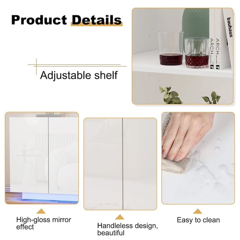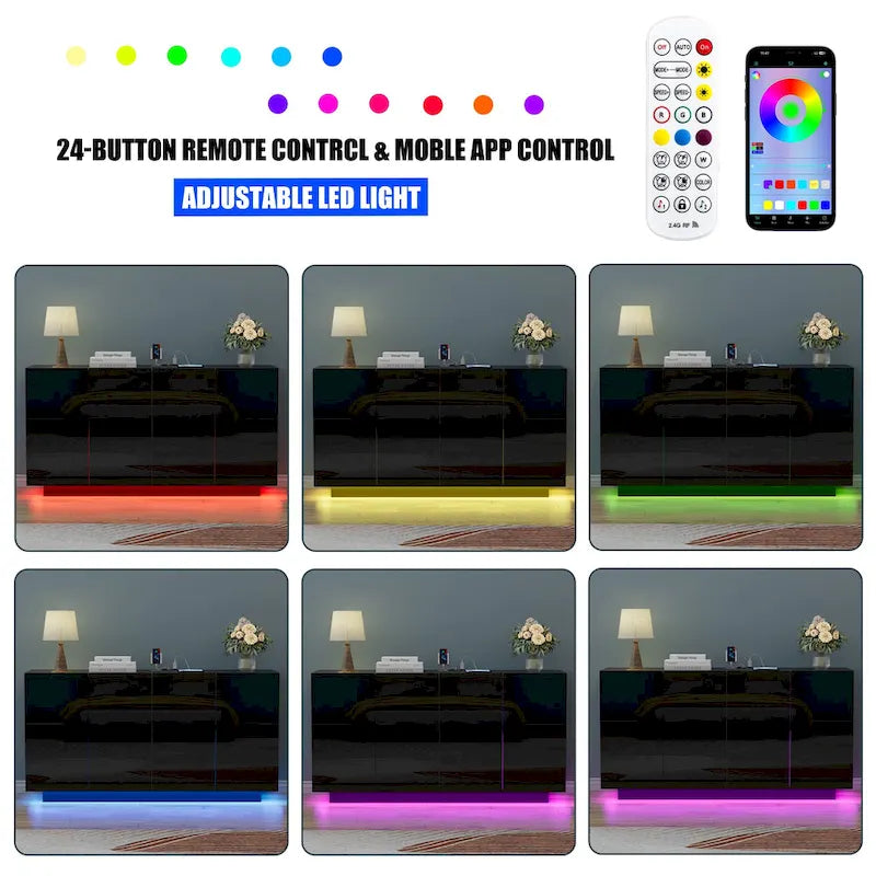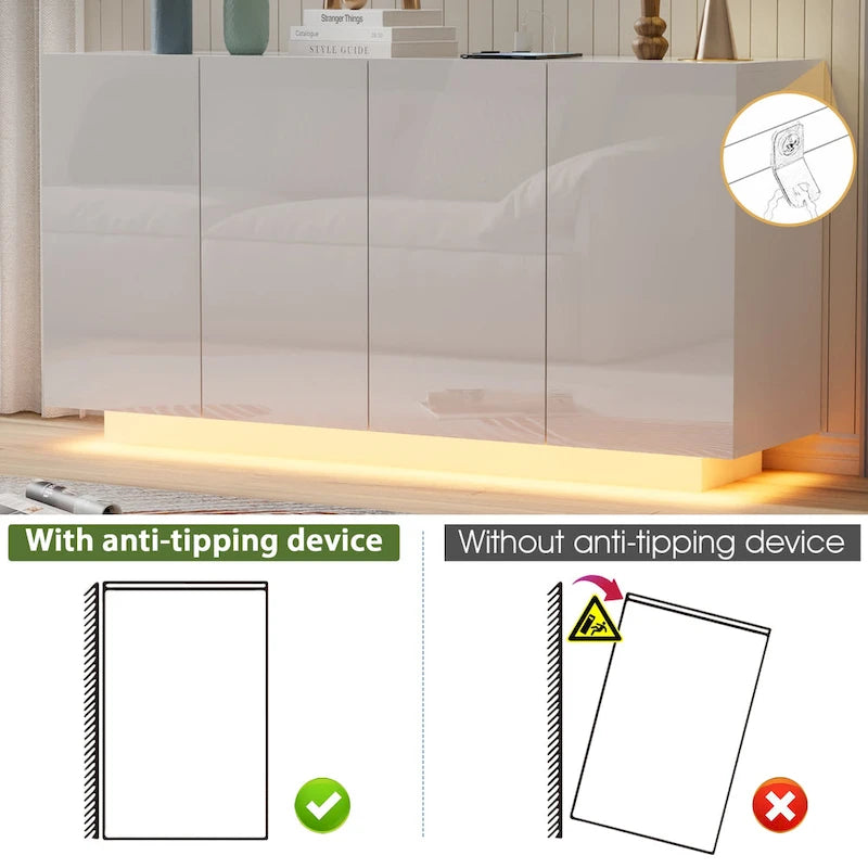 Buffet Cabinet with Storage Bar Cabinet LED light High Gloss Doors for Bedroom, Living Room