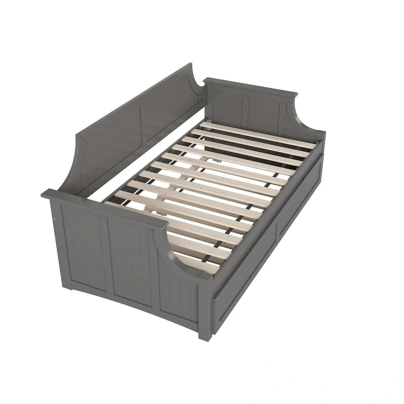 - The Cambridge Twin Size Solid Wood Daybed with Trundle: Features a unique curved back board with tongue and groove beadboard design that is perfect for any room in your home!