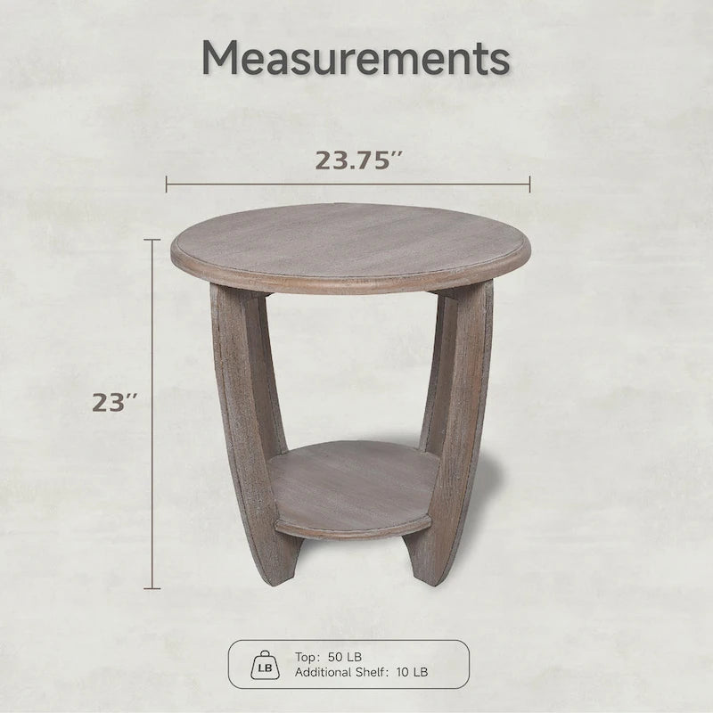 Bring a touch of rustic elegance to your home decor with the COZAYH Rustic Farmhouse End Table. With a French country look, this accent piece is perfect for any country cottage, farmhouse, or antique-themed home. The shaped surface top provides ample space to display your favorite decor pieces, while the lower round shelf is perfect for storing small items or a basket of remotes. The 'V-shaped legs add to the table's charm and make it both durable and stable. Natural wood knots and grain variations add character to this stunning piece.