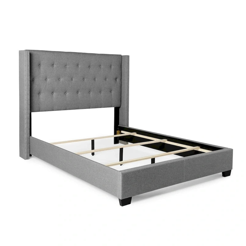 Diamond-tufted Grey Wingback Bed