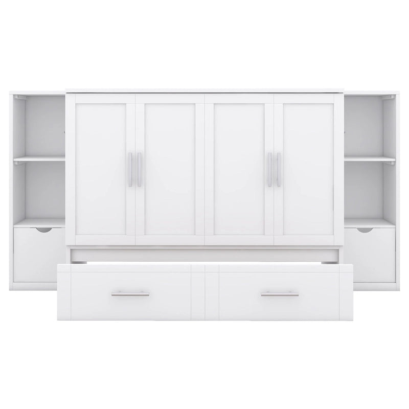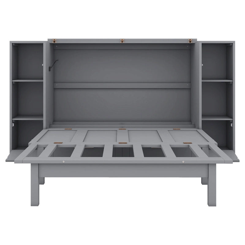 Full Size Murphy Bed with Shelves, Drawers and USB Ports,Gray