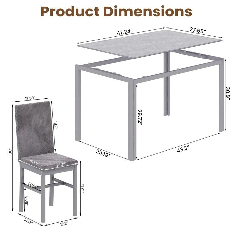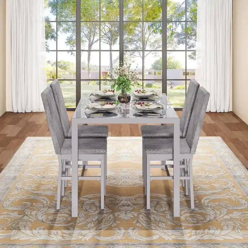 Grondin Modern Style 5-Piece Dining Room Table Set with Tempered Glass Tabletop and 4 Diamond Stitching PU Leather Dining Chairs