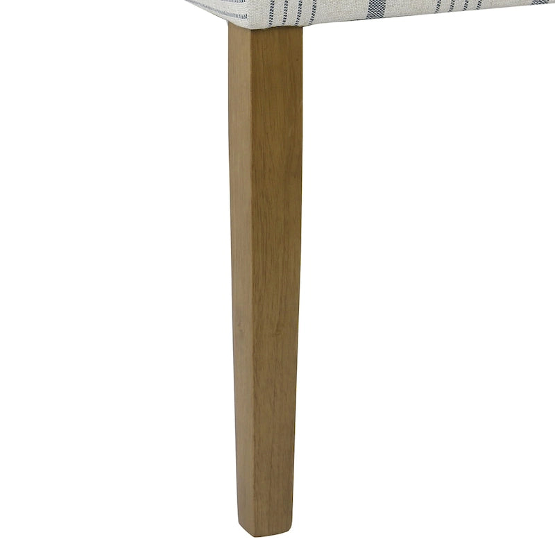 Our parsons dining chair blends the best of a classic traditional parsons chair frame with modern styling. Upholstered in a soft blue calypso stripe pattern with a textured feel, this dining chair is complemented by wood legs in a light honey oak finish. Comfortable and attractive for dining, it also makes an intriguing accent chair in your bedroom or living room. Sold as a set of 2, this is an easy investment that will bring classic style to any room. Easy to assemble and maintain with spot cleaning as needed.