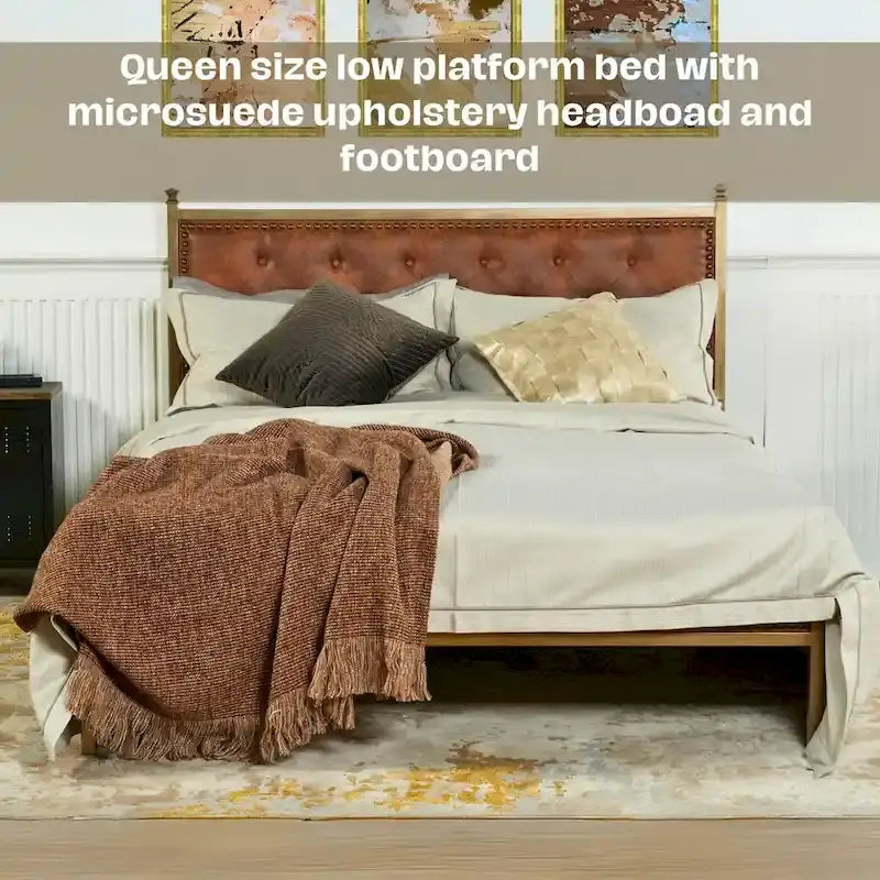 Start a high-quality sleep journey with a padded bed frame. Classic design is suitable for any bedroom decoration. It is used for durable wooden slats to reduce squeaking and noise. Provide you with a quiet sleeping environment. No spring box required, choose your favorite mattress to place on the platform bed frame and enjoy your night.