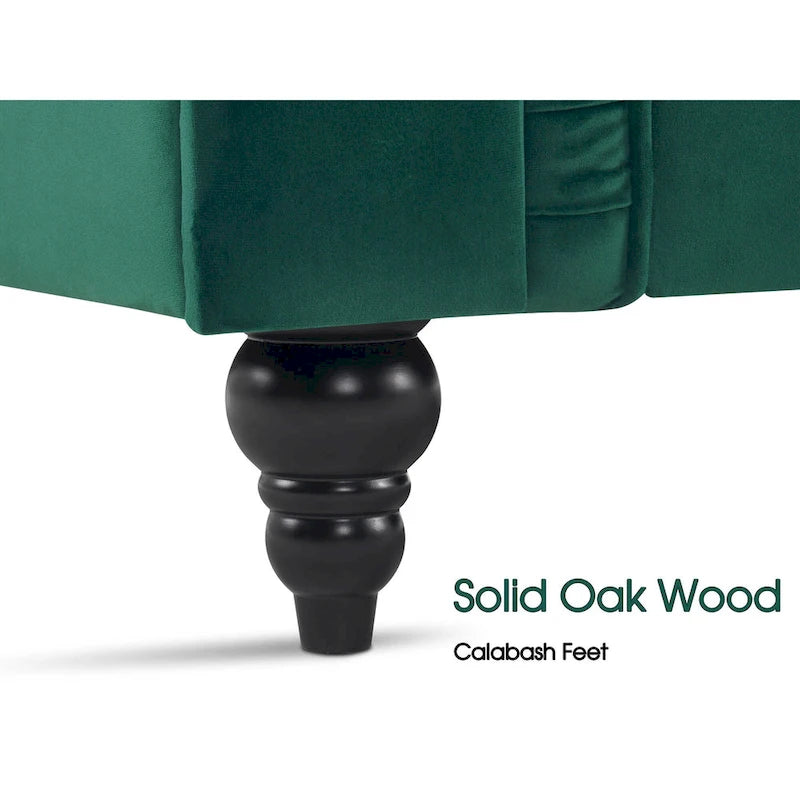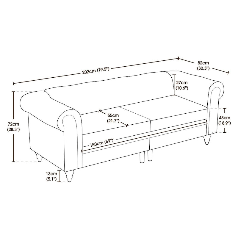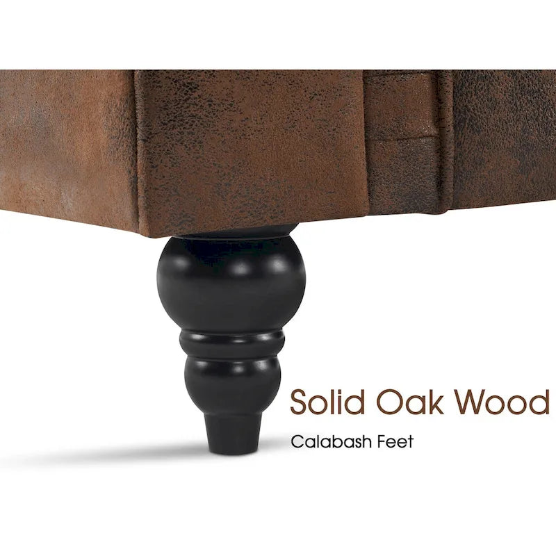 Chesterfield Sofa: Built to last with premium fabrics, materials, and expert with deep button tufting, nailhead accents, scrolled arms, and oak-turned legs.
