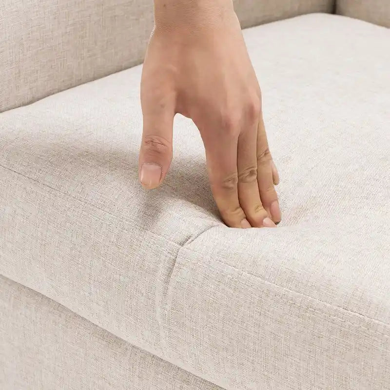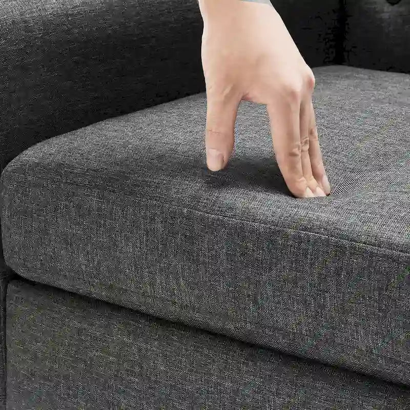 Experience sophistication with our modern accent chaira fusion of mid-century charm and contemporary elegance. Crafted from solid wood and button-tufted linen upholstery, this upholstered living room chair elevates living rooms, bedrooms, and home offices effortlessly. Our classic comfy armchair offers timeless comfort with a solid wood frame and diamond-tufted backrest in 100% linen fabric.