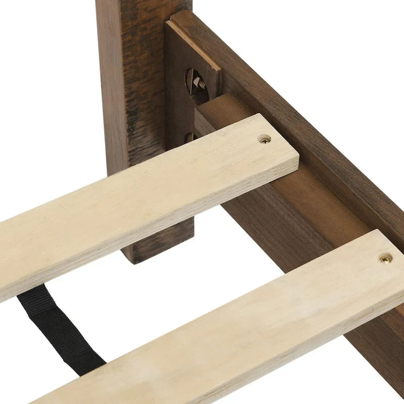 This square bed frame features clean lines and a vintage design, crafted from high-quality natural pine for a close-to-nature feel. The classic wooden platform bed has sturdy solid wood legs, a headboard, and a footboard, with a distressed finish that matches any decor. This robust platform bed can support up to 800 pounds, and the solid wood frame offers comfortable support for the mattress without the need for a box spring. This queen bed frame with headboard is available in three colors, making it an ideal choice for any farmhouse or vintage-style bedroom. The under-bed storage space allows you to store extra luggage, keeping your bedroom tidy.