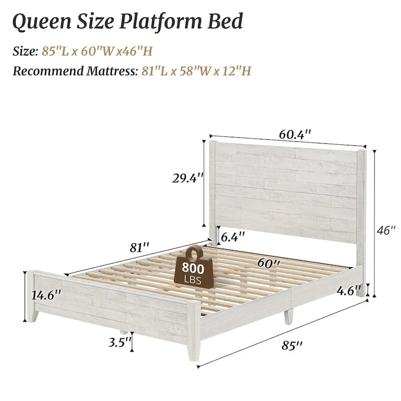 - This platform bed adds a touch of style to your bedroom, while the distressed finish of the headboard enhances its vintage charm.