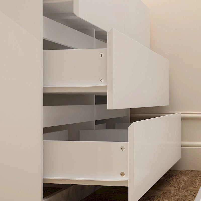 Store folded clothing and extra blankets in the 6 spacious drawers that feature durable metal slides.