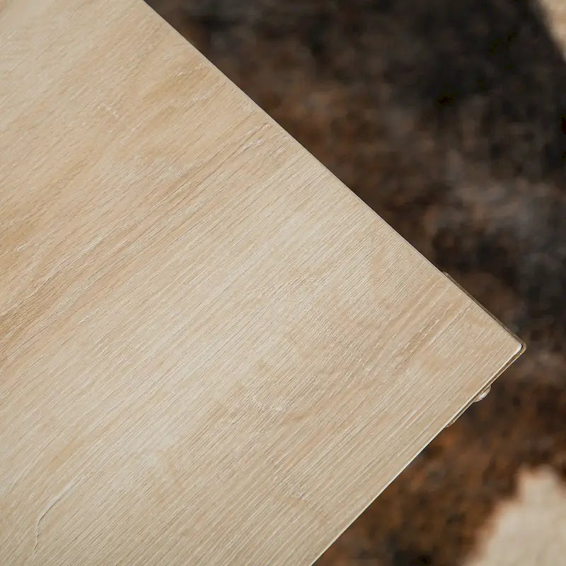 - Made of laminate with faux wood grain