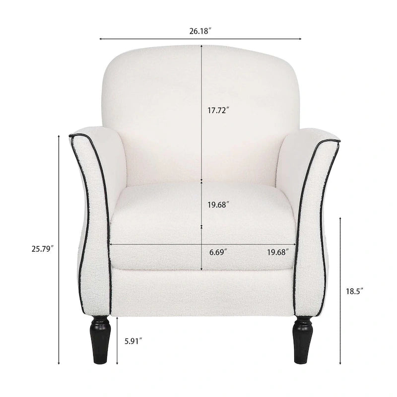 - Material: Fabric + Foam + Wood Frame + Wood Legs