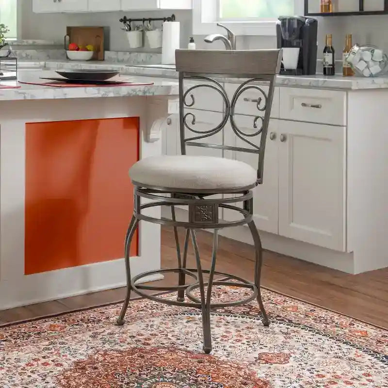 Onyx Big & Tall 360 Swivel Metal and Wood Scroll Counter Stool