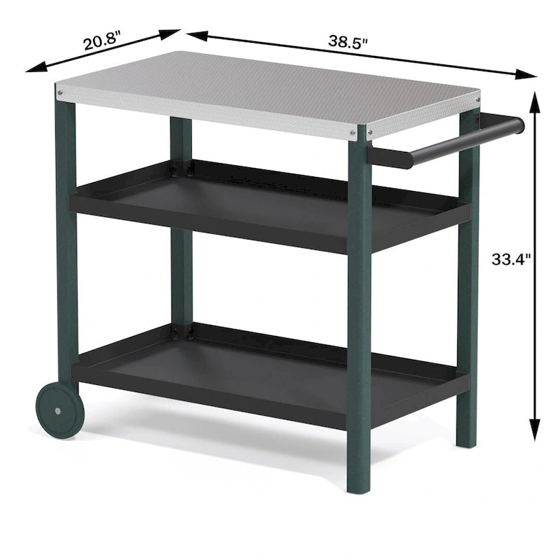 4.[Outdoor Pizza Oven Grill Table Prep Cart ]You can roll it across your yard to the BBQ area .This is not a super lightweight plastic prep table. It has stainless steel top with HDPE frame. The prep cart is around 34 pounds. You can use it for portable barbecue grill or put your pizza oven on it. It's very easy to roll by slightly tilting it with the attached handle and moving it to wherever you like. The table cart still has a practical size for moving around or getting through any doorway.