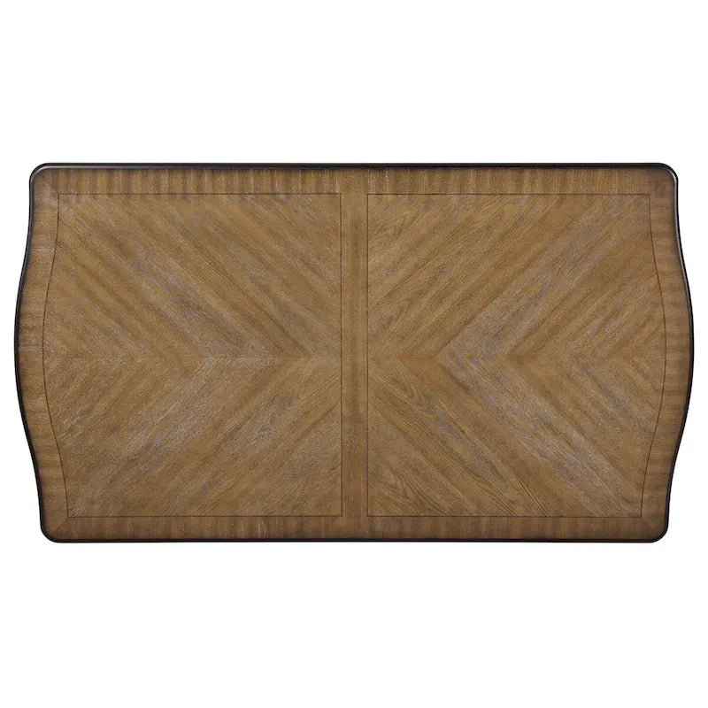 - Weathered oak finished table top: Crafted with MDF and oak veneers, the table top showcases beautiful natural wood grain. The curved ends lend an elegant touch to the table's silhouette.