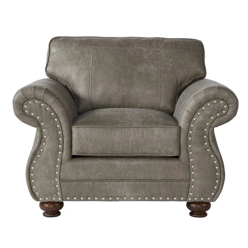 Roundhill Furniture Leinster Faux Leather Upholstered Nailhead Sofa, Loveseat, and Chair Set in Stone Gray