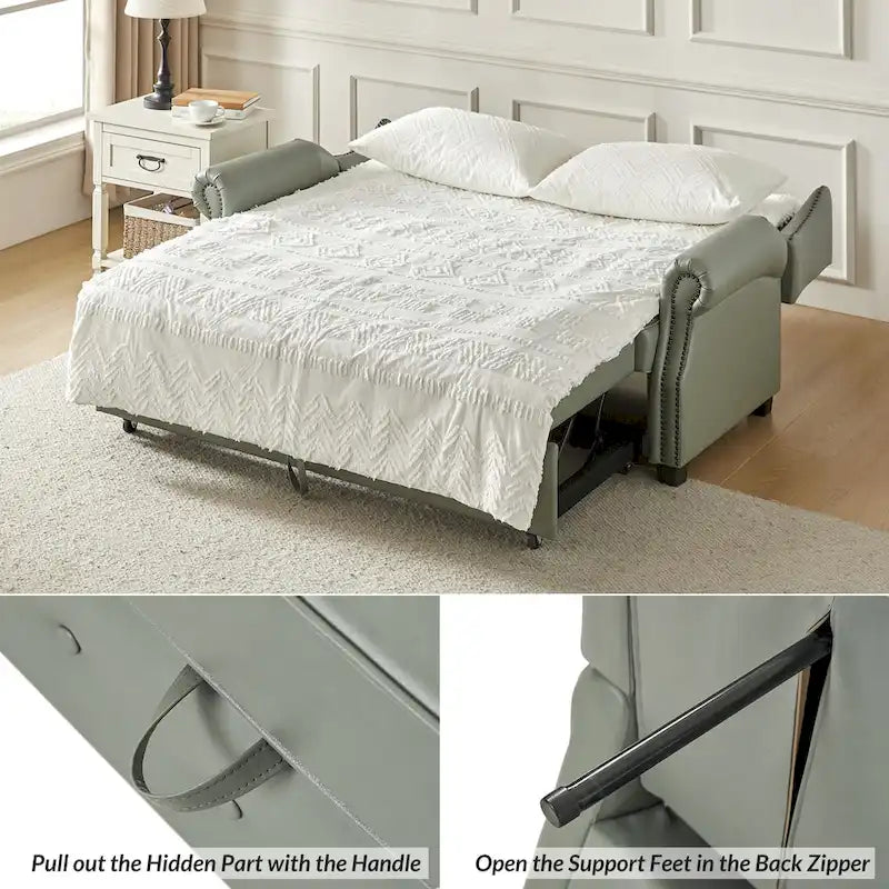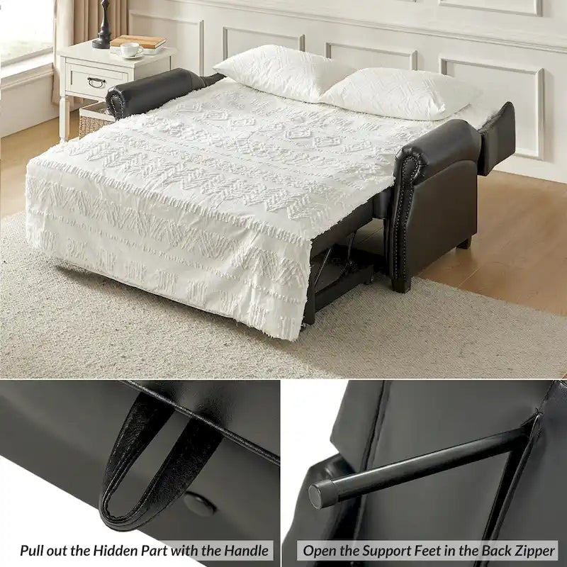 Ruedi Transitional 73.6 Vegan Leather Sofa Bed with Tufted Back and Nailhead by HULALA HOME