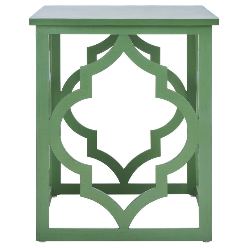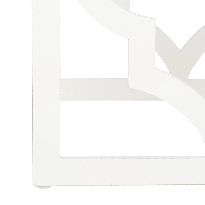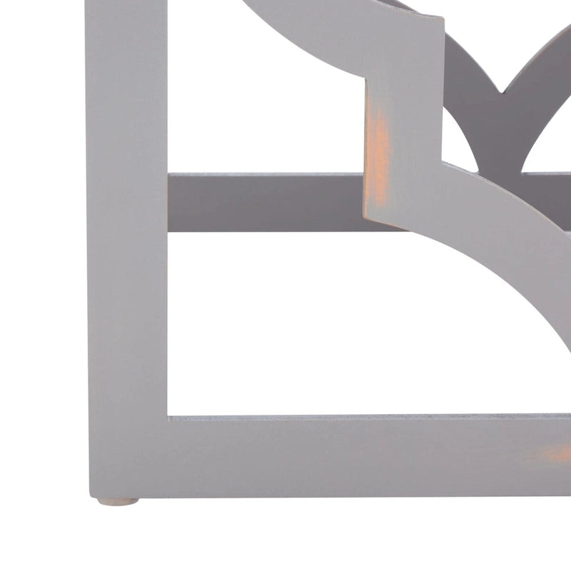 The ages old quatrefoil motif inspired this thoroughly modern End Table. A finish adds subtle sheen to this piece's open frame, creating an elegant, airy look in any interior.