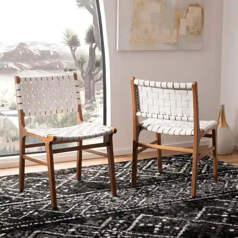 Bring trendsetting style to the table with this Dining Chair. Ideal for elevating the aesthetic of any contemporary decor, Taika's woven leather seat and back are absolutely luxurious and perfectly complement its natural sungkai wood frame. Sold in sets of two.