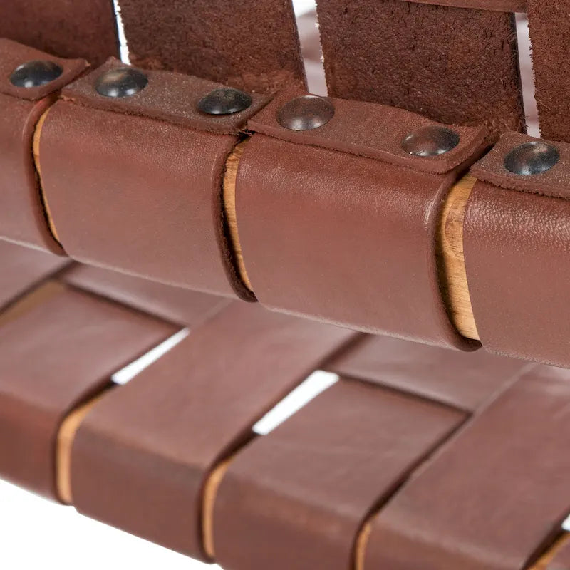 SAFAVIEH Hildred Woven Leather Dining Chair - Cognac / Natural - 20Wx22Dx33H