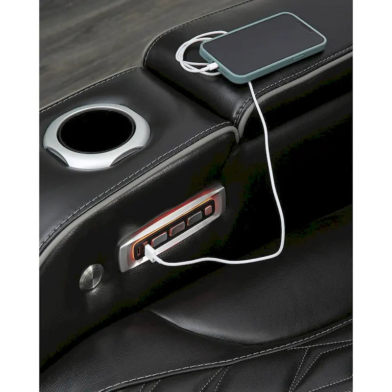 Ready to take your reclining experience to the next level? Then sit up and take notice. With this power reclining sofa, ultimate relaxation is at your fingertips. Experience the pure bliss of an air massage system and heated seats at the touch of a button. The center seat is crafted with a drop-down table with power/USB plug-ins and dual cup holders. Plus the luxurious diamond-stitched upholstery is easy on the eyes, adding elegance to any space.