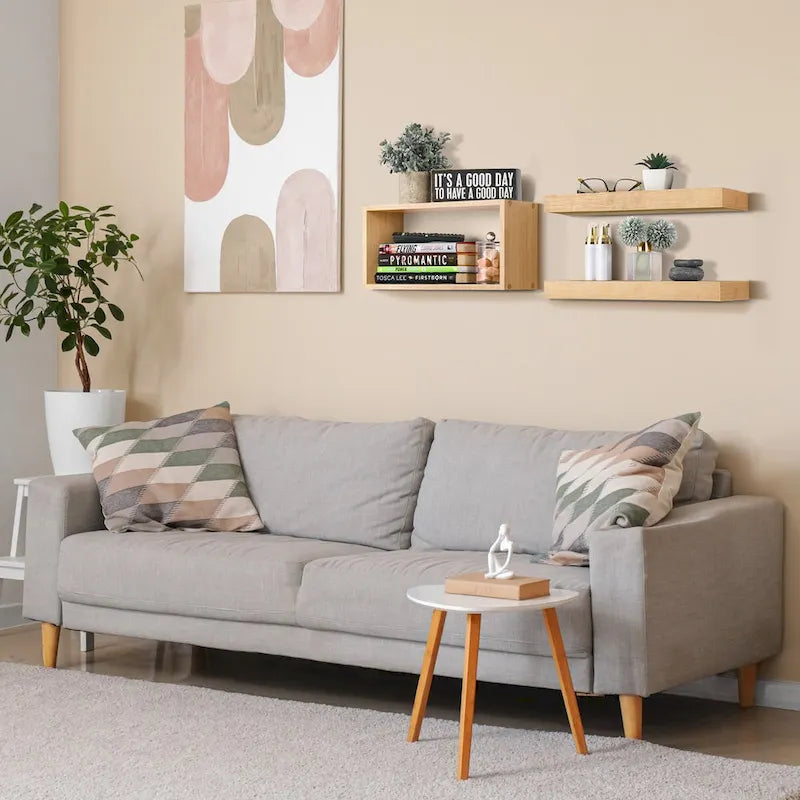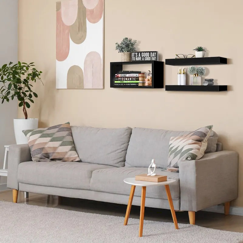 Sorbus Floating Wall Shelf Set: This floating shelf set includes two flat rectangular shelves and one open-box rectangular shelf, offering a flexible and stylish storage solution for any room in your home. Can also be used as wall shelves for the living room, floating bookshelves for wall, bathroom shelves, and more.