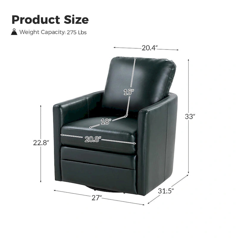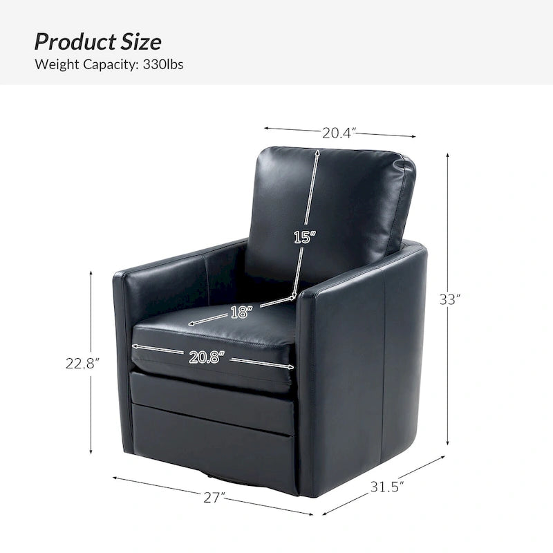 Looking to add a touch of glamour to your living room or bedroom? Look no further than this set of two Terrance Swivel Barrel Chairs with Metal Base. Upholstered in premium faux leather, these chairs boast a comfortable and stylish design with a contemporary and classic style. The sturdy solid and manufactured wood frame, along with the black metal swivel base, make these chairs strong and durable. The high-density foam and pocket spring construction provide optimal comfort and support, while the removable back cushion allows for customizable use. Perfect for any room in your home, these chairs are sure to impress.