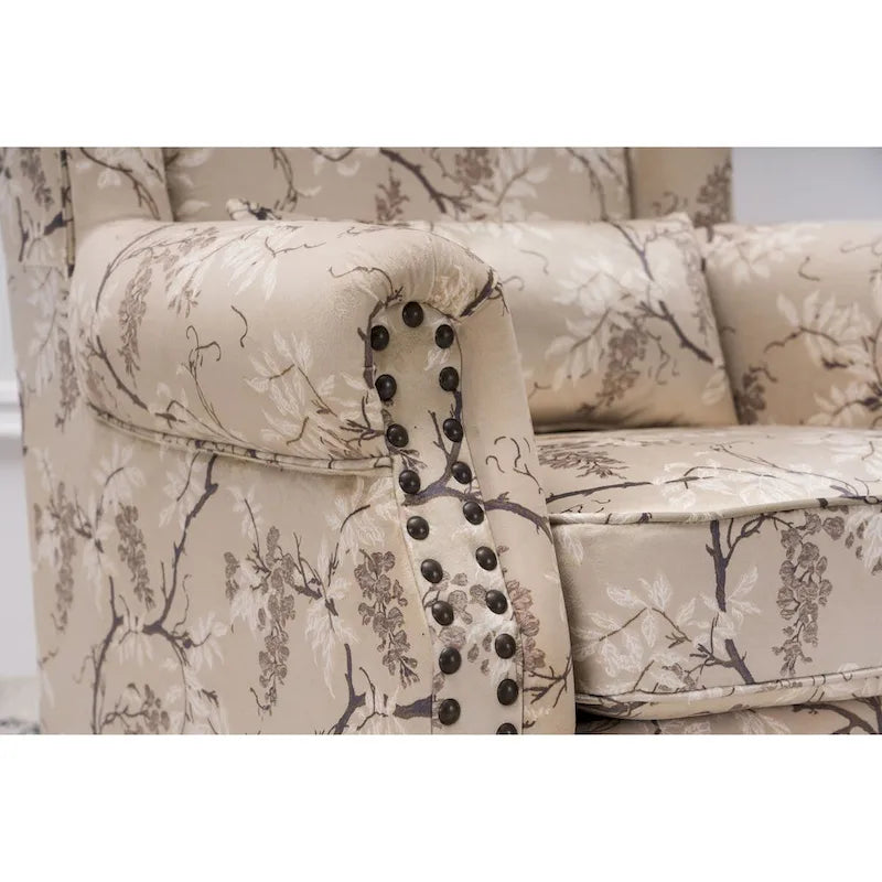 Upholstered Trim Wingback Armchair with Nailhead Trim